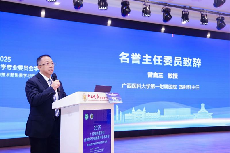 曾自三表示,本次会议是促进区域放射学创新发展的关键平台,在医学影像技术经历深刻变革、精准诊疗理念广泛普及的今天,放射学科面临全新要求,我们要以本次会议为纽带,深化粤桂两地影像同行的交流,共同探索放射技术临床应用的新路径,力争在诊断规范化和技术原创性上实现突破。