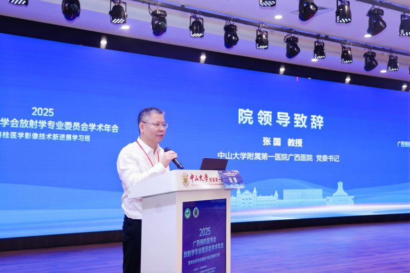 为推动放射学学术创新与技术交流,助力粤桂区域医学影像学科共融发展,10月31日,由广西预防医学会主办,广西预防医学会放射学专业委员会、中山大学附属第一医院(简称中山一院)广西医院承办的“广西预防医学会放射学专业委员会2025年学术年会暨粤桂医学影像技术新进展学习班”在中山一院广西医院八月会议中心举行。广西预防医学会会长耿文奎、中山一院广西医院党委书记张国、广西预防医学会放射学专业委员会名誉主任委员曾自三出席并致辞,开幕式由中山一院广西医院放射影像科主任范淼教授主持。
