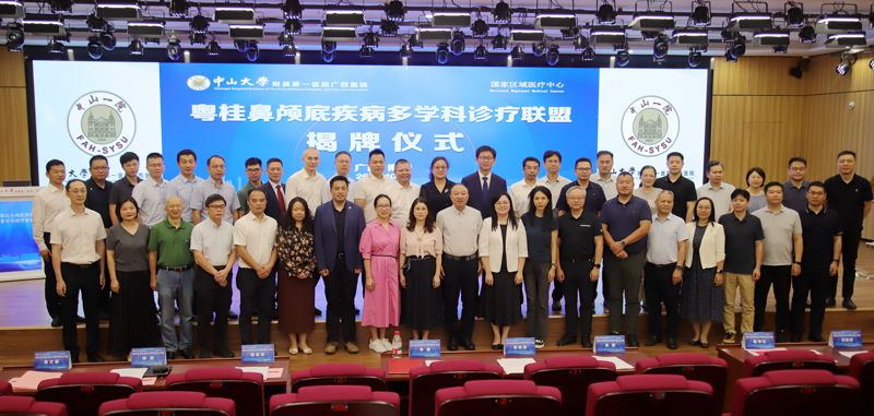 中山大学附属第七医院院长、党委副书记,中山一院耳鼻咽喉科学科带头人,“粤桂鼻颅底疾病多学科诊疗联盟”中心学术顾问文卫平教授通过线上为揭牌仪式致辞。他指出,鼻颅底疾病因病变部位深、解剖结构复杂,涉及耳鼻咽喉头颈外科、神经外科、影像科等多个学科,对诊疗团队的综合能力提出极高要求。而中山一院鼻专科作为中国内镜鼻窦外科创始单位,在鼻颅底外科领域开创多项技术先河,并拥有国内顶尖专家领衔的人才梯队。“粤桂鼻颅底疾病多学科诊疗联盟”成立后,将充分嫁接这一优质资源,建立涵盖粤桂两地多学科专家的协作网络,通过远程会诊、联合手术、病例研讨等形式,打破学科与地域壁垒,推动技术标准化与同质化建设。“粤桂鼻颅底疾病多学科诊疗联盟” 的成立,不是简单的 “技术输出”,而是粤桂两地医疗资源的 “深度融合”,希望联盟各单位共同聚焦合作发展的核心目标,让鼻颅底疾病诊疗的“粤桂模式”,成为跨省份专科联盟提供可复制路径,一同为保障人民群众健康做出更大贡献。