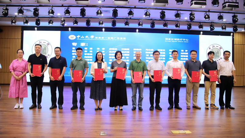 “粤桂鼻颅底疾病多学科诊疗联盟”副组长瞿申红、龙健婷给受聘专家代表颁发聘书。