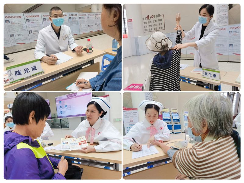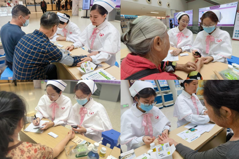 护理人员为现场群众免费测量血压及血糖,发放科普宣传资料,并耐心解答群众问题,帮助大家提升对卒中早期识别与预防的认知。