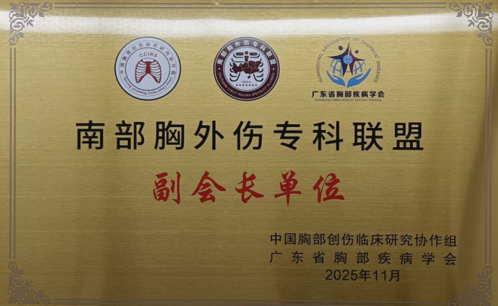 近日,在南部胸外伤专科联盟成立大会上,中山大学附属第一医院(简称中山一院)广西医院心胸外科凭借在胸部创伤诊疗领域的丰富经验,被授予“胸部创伤管理专委会副会长单位”,标志着医院在胸部创伤管理领域的临床技术、学科建设及区域影响力获得全国同行的认可,也为广西乃至华南地区胸部创伤诊疗质量的提升注入新动能。