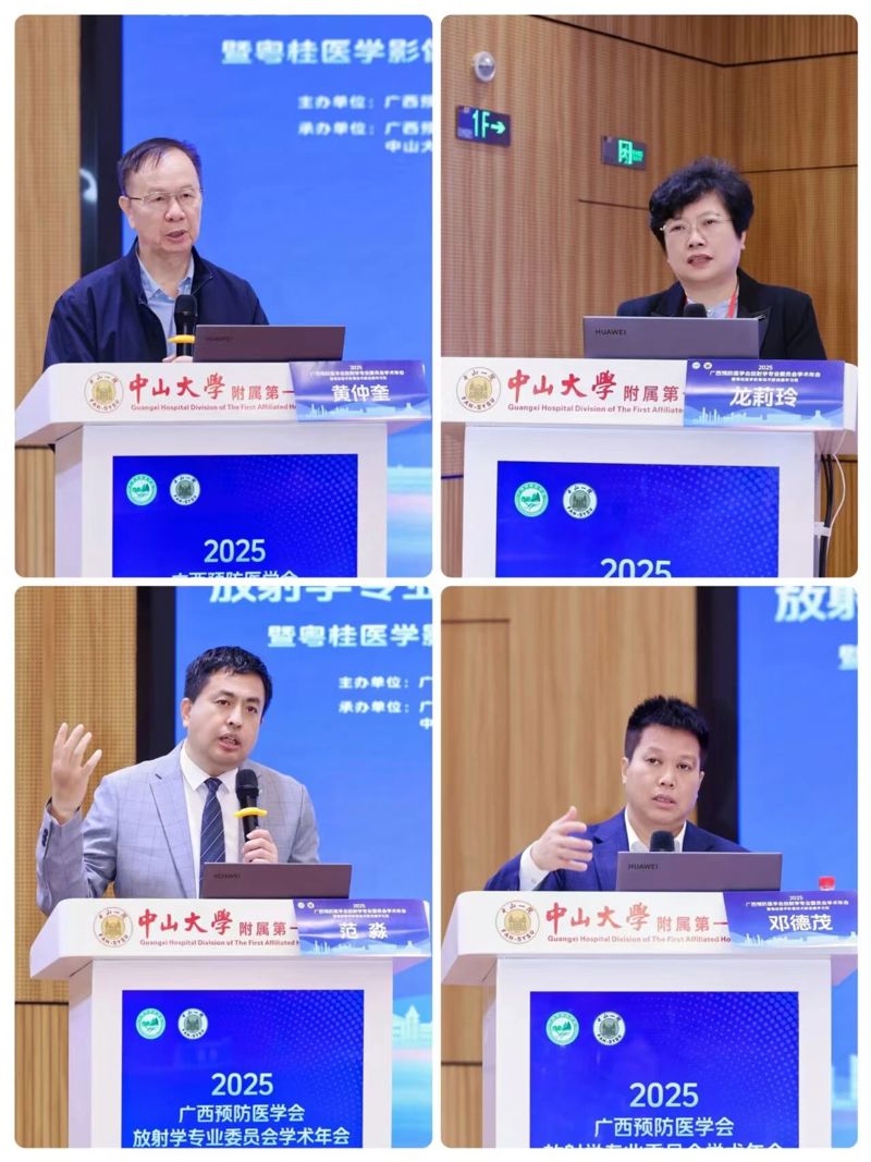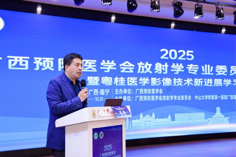 为推动放射学学术创新与技术交流,助力粤桂区域医学影像学科共融发展,10月31日,由广西预防医学会主办,广西预防医学会放射学专业委员会、中山大学附属第一医院(简称中山一院)广西医院承办的“广西预防医学会放射学专业委员会2025年学术年会暨粤桂医学影像技术新进展学习班”在中山一院广西医院八月会议中心举行。广西预防医学会会长耿文奎、中山一院广西医院党委书记张国、广西预防医学会放射学专业委员会名誉主任委员曾自三出席并致辞,开幕式由中山一院广西医院放射影像科主任范淼教授主持。