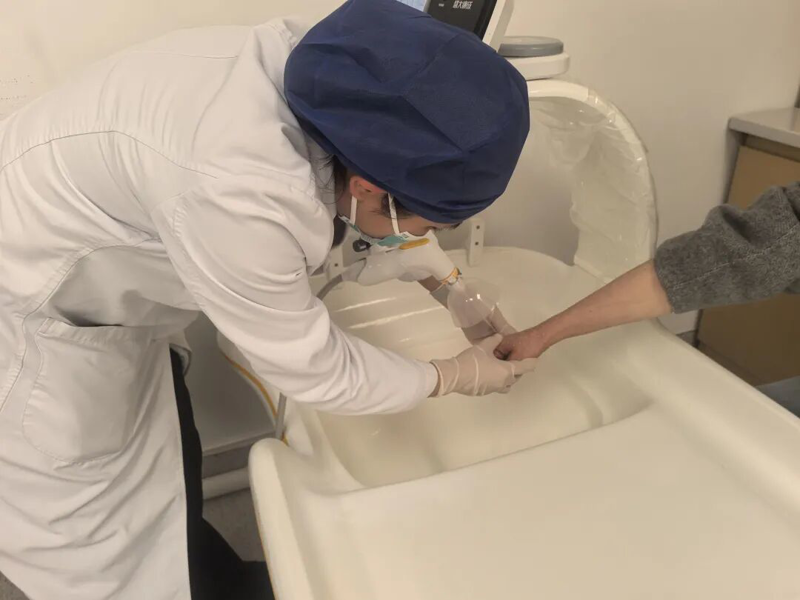 用肥皂水或弱碱性清洁剂,搭配有压力的流动清水,交替冲洗伤口及周边 15 分钟,再用生理盐水洗净,最后用无菌脱脂棉吸尽残留液体,避免清洁剂残留。